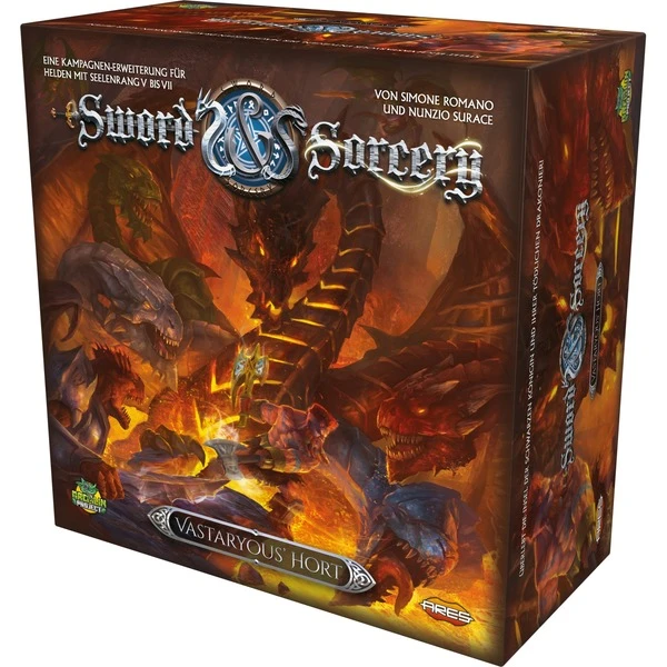 In der Erweiterung Vastaryous’ Hort werden die Helden aus ihren ruhigen Leben gerissen und in ein unbekanntes Land teleportiert. Sie erwachen an der schwarzsandigen Küste einer weit entfernten Vulkaninsel. Sie ist die Heimat der mächtigen Vastaryous und ihrer tödlichen Drakonier! Erlebt das ultimative Ende der Geschichte, die in „Unsterbliche Seelen“ ihren Anfang nahm. Endlich von dem Zauber befreit, der eure Seelen gebunden hat, könnt ihr in den höchsten Seelenrang aufsteigen, um euch schließlich der mächtigen fünfköpfigen Vastaryous zu stellen! Jeder ihrer fünf Drachenköpfe agiert unabhängig voneinander, was diesen Kampf zu einer unbeschreiblichen Herausforderung macht. Ein unvergessliches Finale erwartet euch. Besiegt die Schwarze Königin, auf dass eure Namen niemals vergessen werden! Diese Erweiterung ist kein eigenständiges Spiel. Zum Spielen wird das Grundspiel Sword & Sorcery – Unsterbliche Seelen benötigt.Art.-Nr.: 1683930