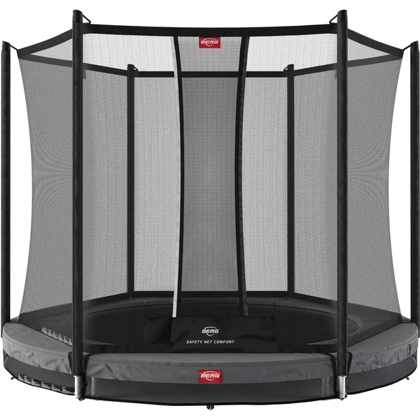 Die Trampoline der Serie Favorit bieten Sprungspaß über Jahre, geringen Verschleiß und sind nahezu wartungsfrei. Besonderen Sprungkomfort ermöglichen dabei die GoldSpring-Solo-Federn. Der Schutzrand ist oben und unten mit dickem PVC beschichtet – das gewährleistet eine lange Lebensdauer. Dieses runde Trampolin lässt sich mit einem Durchmesser von 200 Zentimetern auch in kleinen Gärten unterbringen. Als Inground-Trampolin kann es harmonisch in die Oberfläche integriert werden und bietet durch seine geringe Höhe besseren Unfallschutz. Das maximale Benutzergewicht liegt bei 50 Kilogramm. Es kommt mit dem Sicherheitsnetz Comfort, das mit dicker Pfostenpolsterung und einem selbstschließenden Eingang ein zusätzliches Plus an Sicherheit bringt.Art.-Nr.: 1625398