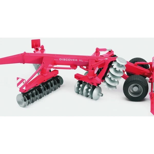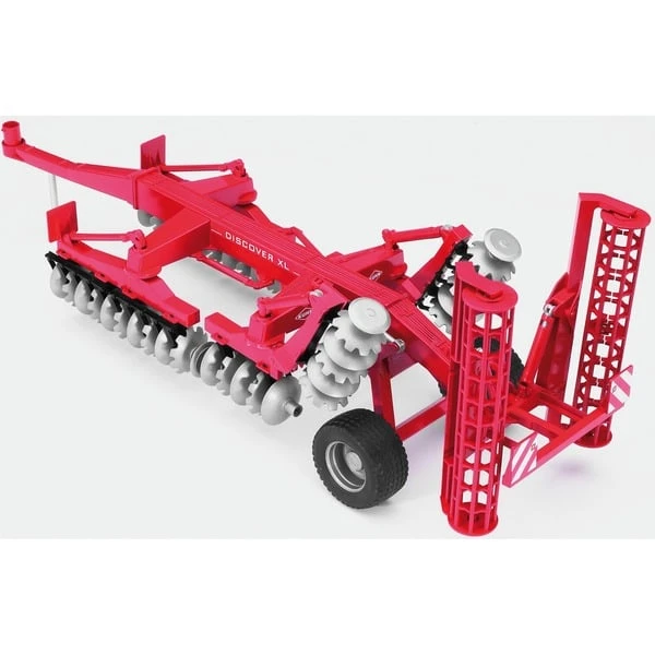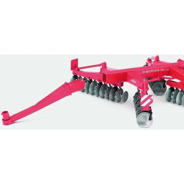 Die Scheibenegge discover XL der Firma Kuhn ist für die Großflächenbearbeitung für Traktoren ab 160 PS geeignet. Analog dem Original verfügt das detaillierte Spielzeugmodell über vier Scheibeneggerahmen mit 54 drehbaren Scheiben und zwei Rohrstabwalzen. Beim Modell können originalgetreu die Scheibeneggerahmen für die Strassenfahrt eingeklappt und aufgestellt werden. Die Scheibenegge kann für die Straßenfahrt angehoben werden. Profilreifen runden das Bild ab.Art.-Nr.: 1233194