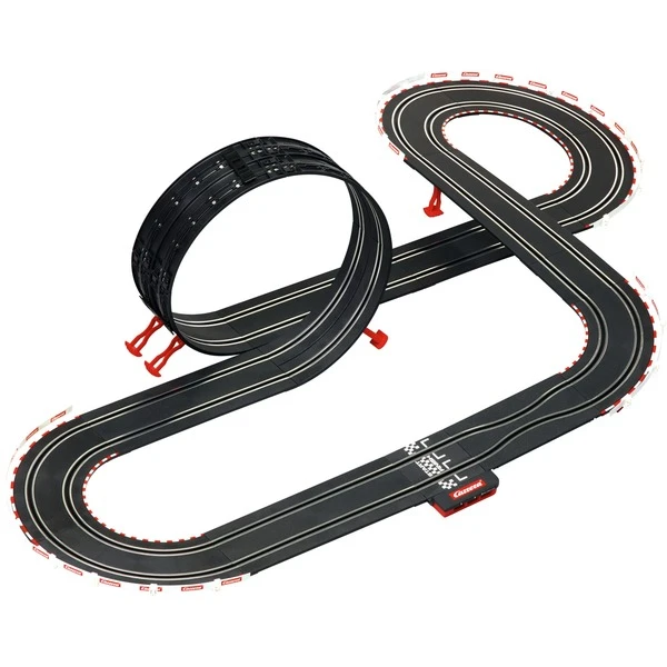 | Inhalt/Ausstattung | 2 Fahrzeuge, GO!!! Anschluss-Schiene, 2 Geraden 342 mm, 3 Geraden 100 mm, 3 Geraden 114 mm, 2 Engstellen, 2 Kurven (1/90°), Looping-Set, GO!!!-Transformator, 2 Handregler | ||