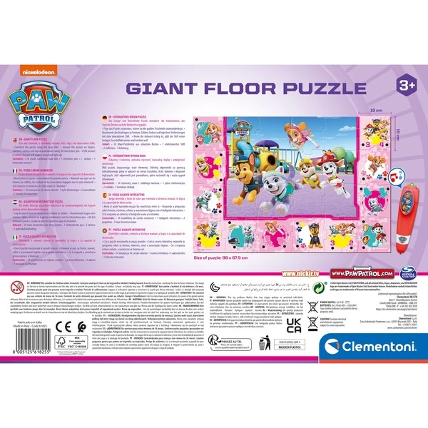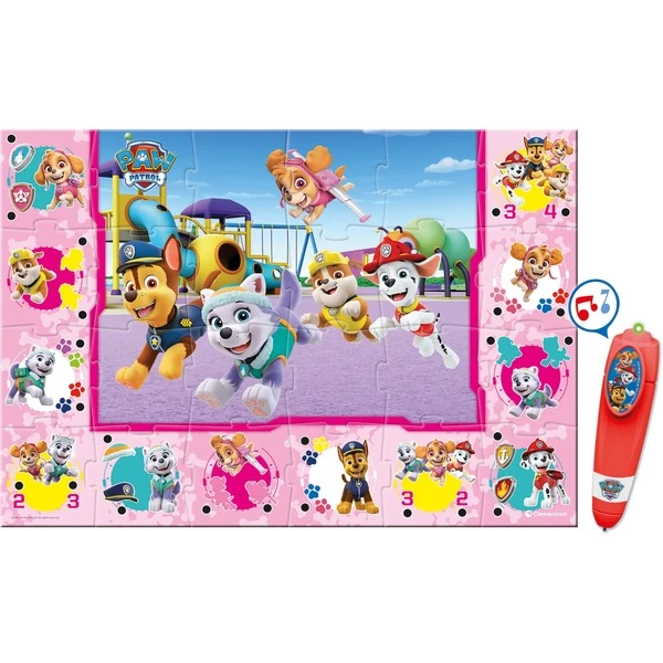 Mit diesem großen Puzzle kommt nach dem Zusammensetzen der Teile der Rätselspaß: Mit dem beiliegenden interaktiven Stift können dann Quizfragen zu Formen, Zahlen, Farben und logischen Verbindungen gelöst werden. Ist die Antwort richtig, leuchtet der Stift auf und macht einen lustigen Soundeffekt. Das aufgebaute Puzzle mit den Helden der Paw Patrol ist 98 x 67,5 cm groß.Art.-Nr.: 1914845