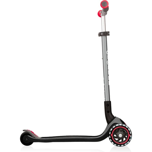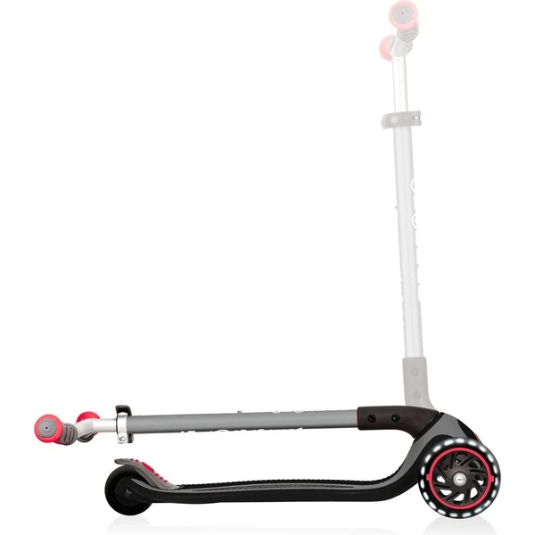 Der Master Lights Roller im neuem Design bietet jede Menge Fahrspaß. Der Lenker ist extra breit und 5-fach höhenverstellbar zur optimalen Anpassung an das Kind. Durch die zuschaltbare Lenkeinrastung und die ergonomischen Handgriffe lässt sich einfach und sicher Fahren lernen. Das extra lange und breite Bi-Injection-Verbunddeck mit weichem, bequemem EVA-Schaum in der Mitte auf einer niedrigen metallverstärkten Struktur trägt bis zu 50 kg. Das Fahrwerk mit Kugellager ABEC 5 dient der optimalen Steuerung. Der Master Lights verfügt außerdem über eine extra lange und breite Hinterradbremse sowie über super High Rebound gegossene PU Rollen mit Lechtfunktion vorne (batterielos) in 120 mm und 80 mm. Nach dem Fahren lässt sich der Master Lights durch das patentierte Klappsystem einfach zusammenklappen.