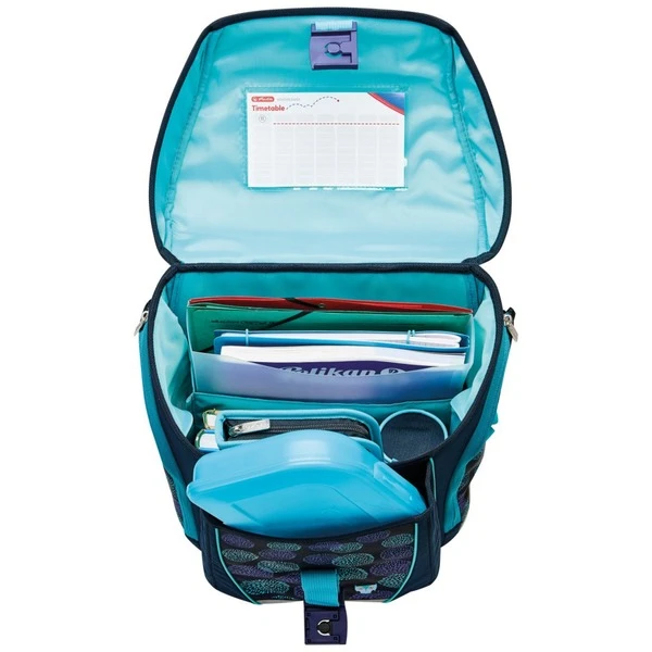 Der Herlitz FiloLight zeichnet sich durch sein geringes Eigengewicht von unter 1 kg aus. Der formstabile Korpus, ein hochwertiges Fidlock Schloss und die sportliche seitliche Taschenaufteilung machen es den Kindern einfach einen guten Überblick über die Schulmaterialien zu behalten und sich schnell zu organisieren. Durch das Rückensystem passt sich der Herlitz FiloLight immer an die sich ändernde Körpergröße des Kindes an. Der Einsatz des ergonomisch geformten Rückenpolsters, welches mit seinem atmungsaktivem Material einen optimalen Tragekomfort bietet, ein abnehmbarer Hüftgurt sowie verstellbare Schulter- und Brustgurte sorgen für eine komfortable und angenehme Passform, hohe Flexibilität und große Anpassungsmöglichkeiten. Auch in puncto Sicherheit überzeugt der Herlitz FiloLight. Das hochwertige Reflexmaterial auf Front- und Seitenbereich sowie den Schultergurten und an der Deckelklappe sorgt für ein hohes Maß an Sichtbarkeit und Sicherheit in der Dunkelheit.Art.-Nr.: 1815466