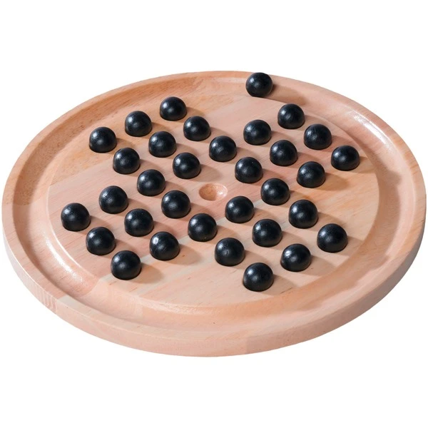 Diese aus Holz hergestellte Version von Solitaire funktioniert nach dem klassischen Spielprinzip: Zu Beginn des Spiels liegt auf jedem Feld eine Kugel, nur das Feld in der Mitte bleibt leer. Eine Kugel darf eine angrenzende Kugel waagerecht oder senkrecht überspringen und muss dabei immer auf einem freien Feld landen. Die übersprungene Kugel wird aus dem Spiel genommen. Wenn keine Kugel mehr übersprungen werden kann, endet das Spiel. Je weniger Kugeln dann noch auf dem Brett liegen, desto besser. Ist nur noch eine Kugel übrig, so wurde Solitaire gemeistert. Solitaire wird alleine gespielt und ist in dieser hochwertigen Variante auch ein tolles Deko-Objuekt.Art.-Nr.: 1916111