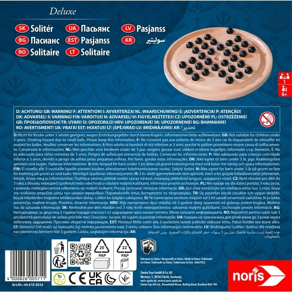 | Inhalt/Ausstattung | Spielbrett aus Holz, 33 Kugeln | ||