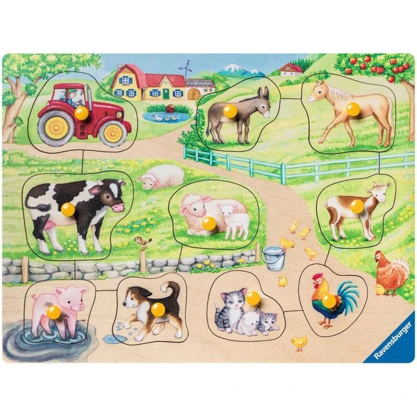 Qualität aus Holz gibt es in der Serie my first wooden puzzle schon für die Kleinsten. Diese Serie von Ravensburger bietet liebevoll illustrierte Motive und leichte Handhabung durch farbige Greifknöpfe an den einzelnen Teilen. So macht Puzzlen auch schon Kleinkindern Spaß – und ganz nebenbei entdecken und begreifen sie dadurch spielerisch ihre Umwelt. Dieses Puzzle enthält kleinkindgerechte Motive aus der Welt eines Bauernhofs.Art.-Nr.: 100004713