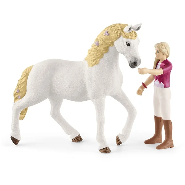 Horse Club Sofia & Blossom von Schleich Horse Club gehören einfach zusammen! Seit Sofia von der Andalusier-Stute bei ihrer ersten Begegnung auf eine lustig-freche Art gestupst wurde, bringt die beiden nichts mehr auseinander. Die Mädchenfigur Sofia ist vollbeweglich und kann nicht nur stehen, sondern auch reiten und sitzen. Sattel, Zaumzeug und Zügel passen perfekt zur temperamentvollen Pferdefigur, und Sofia trägt einen Reithelm sowie ein magentafarbenes Horse Club-Armband – das Erkennungszeichen ihres Clubs.Art.-Nr.: 1832703