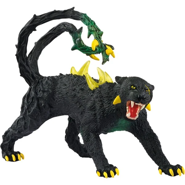 Obacht! Der Schattenpanther von Schleich Eldrador Creatures durchstreift wie ein dunkles Phantom das Dickicht des Dschungels. Mit seinem pechschwarzen Fell kann er sich unbemerkt im Schatten fortbewegen, und von dort aus seinen Feinden auflauern. Kommt ihm ein Eindringling zu nah, springt er mit seinen messerscharfen, ausgefahrenen Krallen aus der Deckung hervor und stürzt sich auf den überrumpelten Gegner. Oft kommt es anschließend zu einer atemberaubenden Verfolgungsjagd, die der ausdauernde Dschungel-Bewohner locker für sich entscheiden kann. Besonders stolz ist der gefährliche Schattenpanther auf seine beiden dornenbesetzten Lianen-Schwänze: Sie helfen ihm, auch bei Sprüngen aus großer Höhe die Balance zu halten. Außerdem kann er die starken Schwänze wie eine doppelte Peitsche einsetzen. Die Dornen an den Schwanzenden und auf seinem muskulösen Rücken sind richtig gefährlich: Sie enthalten ein lähmendes Gift, das Feinde sofort kampfunfähig macht.Art.-Nr.: 1676678