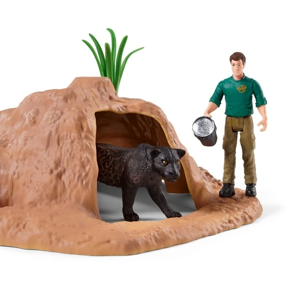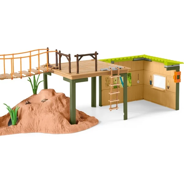 In der neuen Abenteuerstation von Schleich WILD LIFE erlebt Ranger Steve mit seinen Tieren jeden Tag etwas Neues! Nach dem Aufstehen besucht er zuerst die zwei kleinen Schildkröten, die schon ausgelassen spielen und den Hügel hinabrutschen. Auch das süße Äffchen hat in seiner Astrutsche großen Spaß! Was ist das für ein Gebrüll? Der schwarze Panther und das Krokodil sind sich nicht einig wer es sich in der Erdhöhle gemütlich machen darf! Ranger Steve eilt schnell über die Hängebrücke, um den Streit zu schlichten. Doch Vorsicht: Manche Holzbretter der Hängebrücke sind ziemlich morsch! Ranger Steve muss vorsichtig sein, damit er nicht einbricht. Ob er das wohl schafft?Art.-Nr.: 1832669