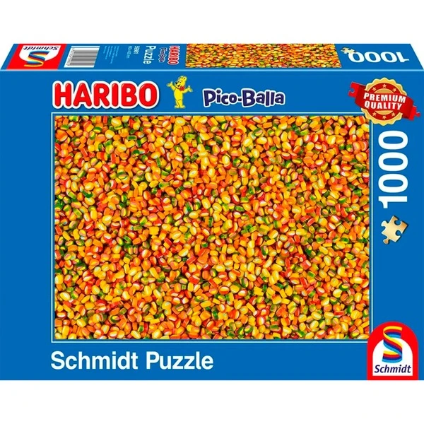 Die Puzzles der Premium-Serie von Schmidt Spiele überzeugen durch hohe Formenvielfalt, höchste Passgenauigkeit und einen speziellen Mattlack für spiegelfreies Puzzeln. Dieses Puzzle mit 1000 Teilen zeigt als Motiv Haribo Picoballa.Art.-Nr.: 100010533