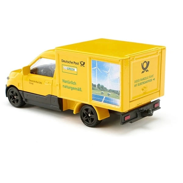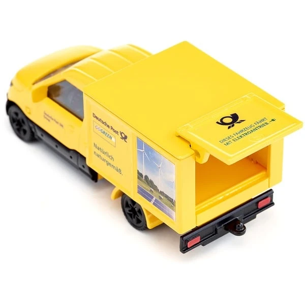 Dieser kleine Lieferwagen im typischen Gelb der Post und mit Kastenaufbau hat Türen zum Öffnen und eine Heckklappe, die sich nach oben öffnen lässt. Hinzu kommt eine Anhängerkupplung, so dass er mit kompatiblen Hängern aus der Serie SUPER kombiniert werden kann. Mit im Lieferumfang sind außerdem einige Koffer zur Auslieferung.Art.-Nr.: 1902881