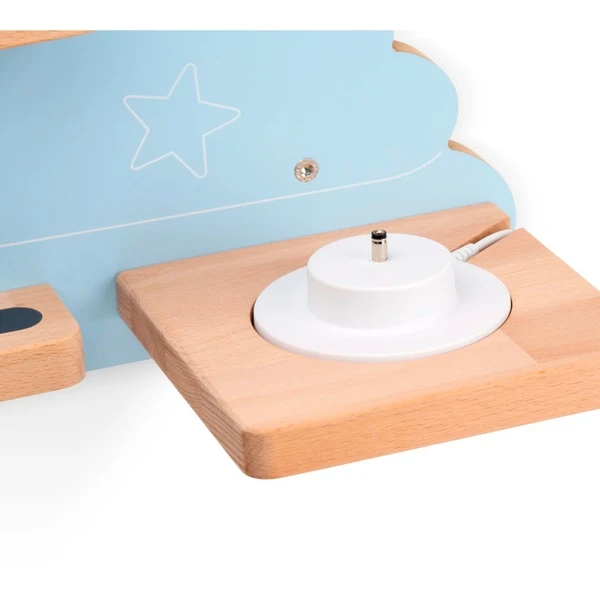 Das Tonie Regal „Auf der Traumwolke“ in der Farbe Himmelblau ist die perfekte Bühne für die Tonie-Sammlung. Dabei ist es viel mehr als ein dekoratives Wandregal: Es ist eine moderne Bibliothek, die entworfen wurde, um die Lieblings-Tonies, die Toniebox und ihre Ladestation unterzubringen. Auf der himmelblauen Wolke ruhen die liebsten Einschlafhilfen wohl behütet, bevor sie ihren Besitzer ins Träumeland begleiten. Süße Motive aus der Tonie-Welt machen den bezaubernden Blickfang zum einzigartigen Hingucker in jedem Kinderzimmer. Bis zu 20 Tonies stehen oder hängen sicher auf den magnetischen Holzflächen. Die Toniebox hat ihren eigenen Platz mit Öffnung und Vertiefung für ihre Ladestation. Das Regal lässt sich schnell und einfach an der Wand montieren, die passenden Schrauben und Dübel sind dabei.Art.-Nr.: 1918276