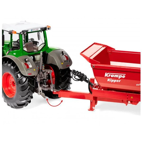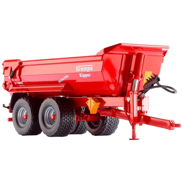 Mit diesem Modell ist das Wiking-Sortiment im Maßstab 1:32 ist um einen Bestseller reicher. Mit dem HP 20 von Krampe stellt Wiking die Halfpipe-Ausführung im Präzisionsmaßstab vor. Der fein gearbeitete Fahrgestellrahmen aus Metall lässt sich mit beweglicher Deichsel an den Schlepper anhängen. Die mächtige Mulde entsteht aus Zinkdruckguss, die Heckklappe aus Kunststoff. In der Kippfunktion öffnet sich die Heckklappe zum Entladen. Die zwei Achsen des HP 20 verfügen über eine ballige Bereifung mit grobstolligem Profil. Zur Simulation der Geländetauglichkeit wurde der Anhänger mit Pendelachsen ausgestattet, so dass sich das Fahrwerk dem Gelände anpasst. Die Kotflügel werden aus Kunststoff gefertigt, der Stützfuß ist vorne links beweglich am Rahmen angebracht. Das Heck verfügt über eine filigrane Stoßstange mit vorbildgerechter Beleuchtungseinrichtung.