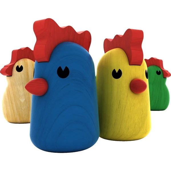 | Inhalt/Ausstattung | 24 eierförmige Wegplättchen, 12 achteckige Hühnerhofplättchen,4 Hühner aus Holz,4 Schwanzfedern aus Holz,1 Spielanleitung | ||
